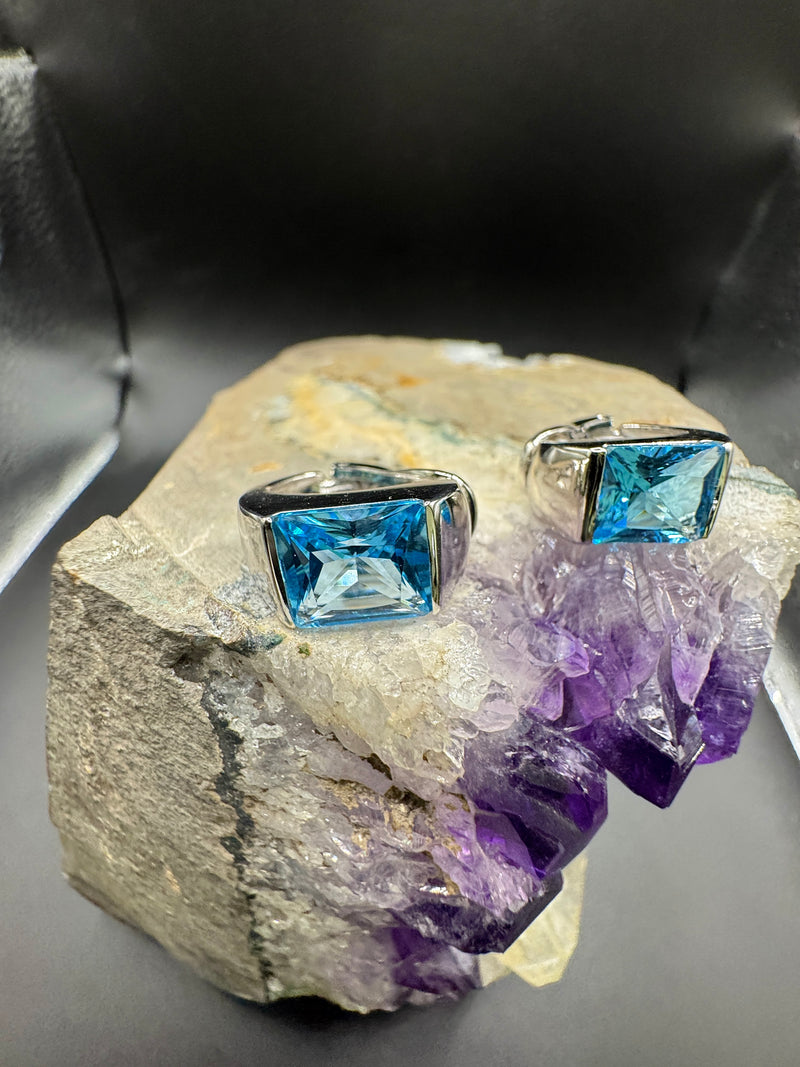Hochwertige Ohrringe in 18 Karat Weißgold mit Blautopas