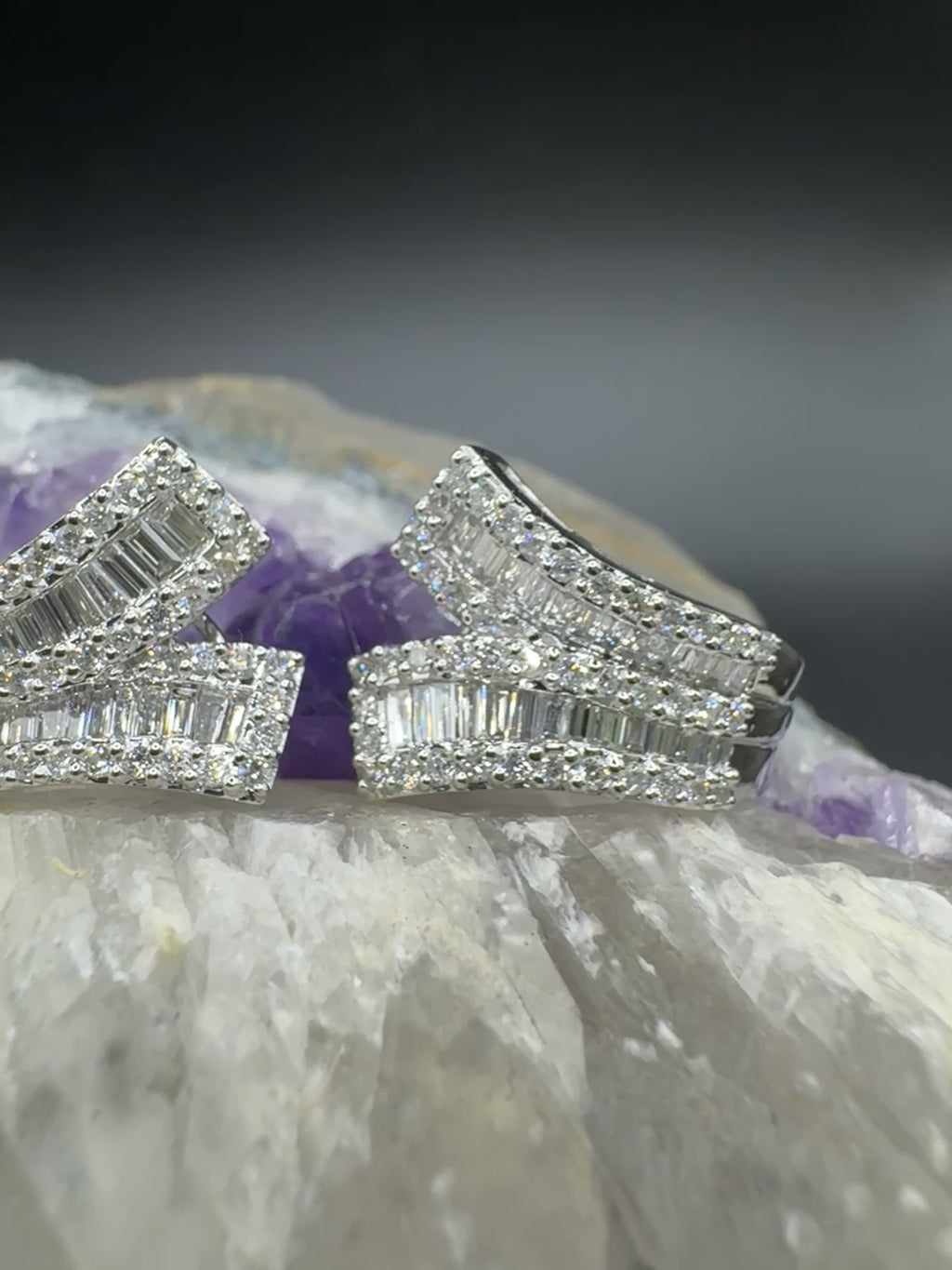 Aufregende Ohrringe in 18 Karat Weißgold mit Brillanten & Diamant-Baguettes