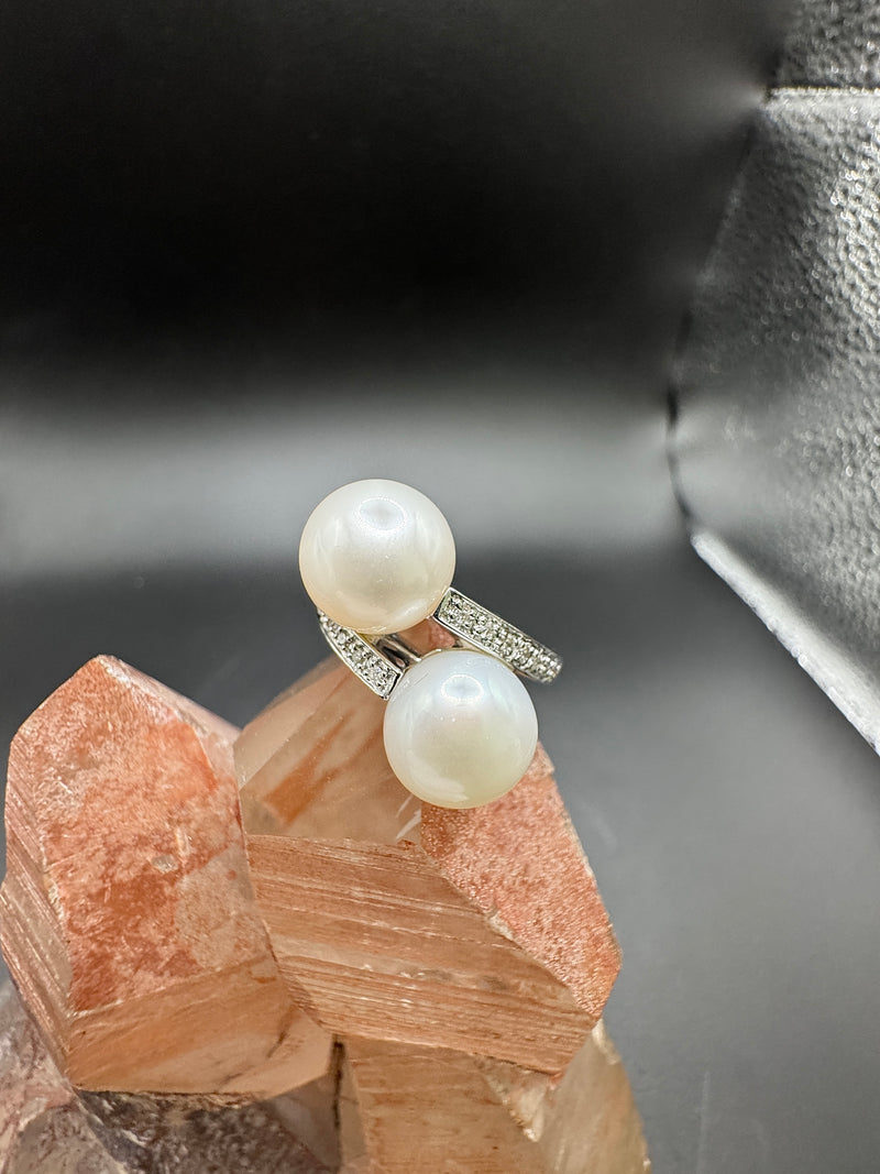 Eleganter Toi-et-Moi-Ring in 9 Karat Weißgold mit Diamanten und Perlen